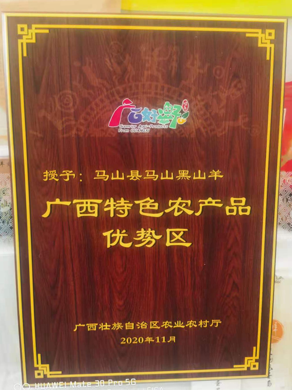 马山黑山羊广西特色农产品优势区荣获第三批广西特优区优秀项目牌匾
