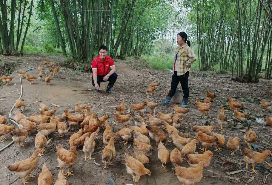 驻村工作队支持脱贫户发展肉鸡养殖业。图源钦南发布