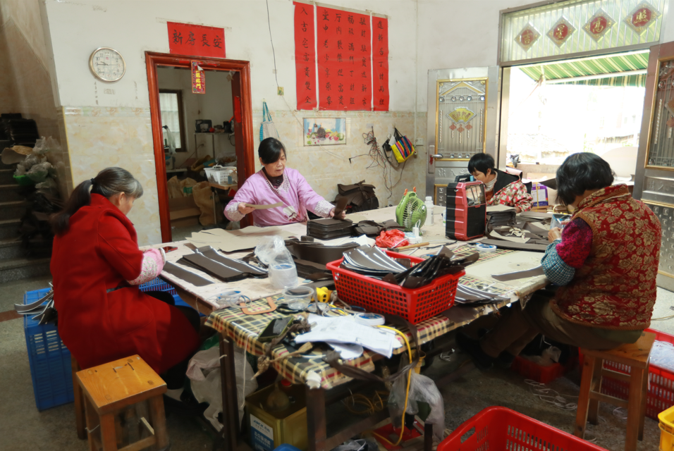 浦北县乐民镇的皮革制品半成品加工车间。 图源浦北发布