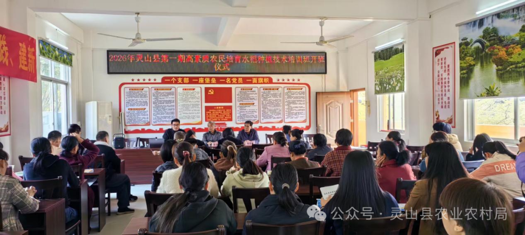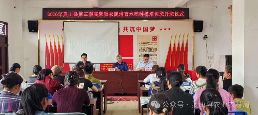 2026年灵山县第一期高素质农民培训水稻种植技术培训班在灵山县檀圩镇石球湖村委开班