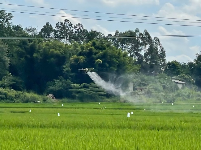 无人机“绘”出丰收美景!苍梧县水稻高产攻关行动示范基地迎科技“飞防” 守护