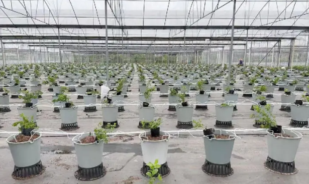 城东镇河口都市农场蓝莓种植基地里,一株株蓝莓苗郁郁葱葱(吴炫菲 摄)