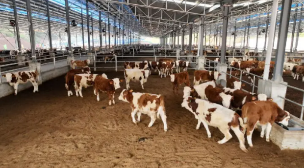 乐一牛产业园养殖场内的西门塔尔牛(麦好明 摄)