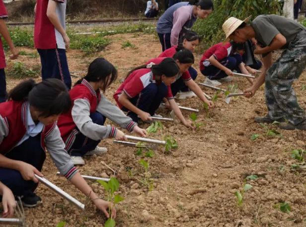 学生在万秀区城东镇河口都市农场开展研学体验农耕活动(莫焜 摄)