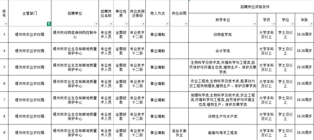 2026年区考和梧州市事业单位(非中小学教师岗位)人员招录开启,梧州市农业农村局直属参公单位计划招录1名参公人员,直属事业单位计划招录8名事业单位人员!期待你的加入!