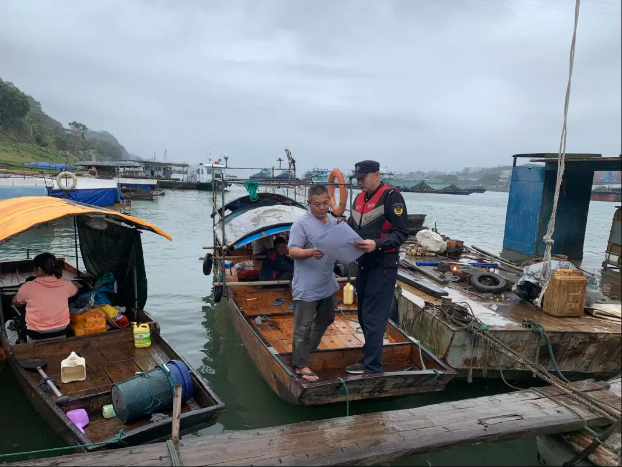 3月2日,梧州市农业农村局执法人员向渔民宣传禁渔期制度。 梧州市农业农村局提供