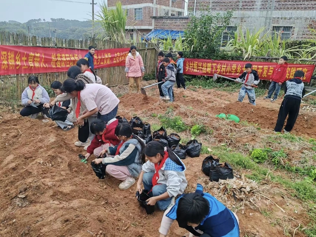 为深入实施乡村振兴战略,推动乡土资源、劳动教育与特色产业发展有机融合,近日,苍梧县农业农村局指导岭脚镇平琴小学、龙潭小学正式建立特色农产品劳动实践基地,组织师生开展粉葛、冬瓜等本地特色农产品种植活动,以“田间课堂”赋能劳动教育,助力乡村人才振兴和产业振兴。