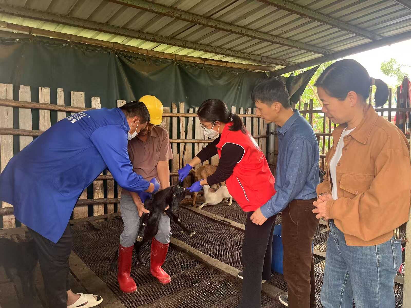 又是一年防疫季, 北流部分偏远乡村存在村级防治员队伍老龄化问题,防疫人员不足、技术更新滞后,难以满足春季集中免疫需求。了解情况后,科技特派员迅速行动,主动化身“临时动物防治员”,深入基层,全力协助开展春季动物防疫工作,主动补位基层防疫力量。在农户庭院,玉林科技特派员卢凤不但动口,还动手,严格规范操作流程,完成禽流感、新城疫等疫苗注射,同步做好免疫台账登记;在羊圈边,他们为黑山羊接种疫苗,耐心向养殖户演示疫苗保存、注射剂量控制等关键技巧,解答日常饲养中的疑难问题。“以前村里防治员年纪大了,春防时总担心赶不上进度、操作不规范。现在科技特派员上门帮忙,不仅补充了人手,还教我们科学防疫方法,心里踏实多了。”一位养殖户感慨道。