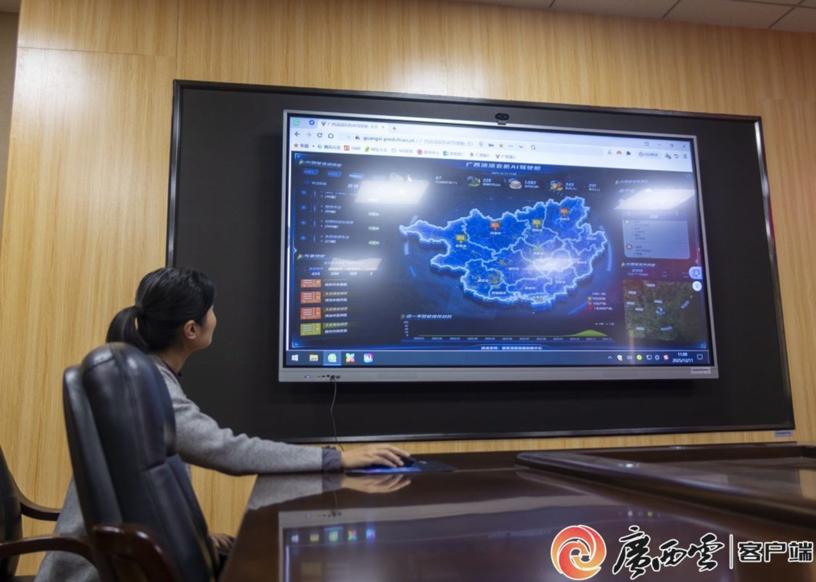 广西“滴滴农机”管理后台上,各项数据一目了然。 记者 黄河 摄