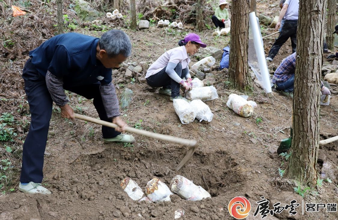 高山林下灵芝菌包覆土栽培。(广西特色作物研究院吴京城供图)