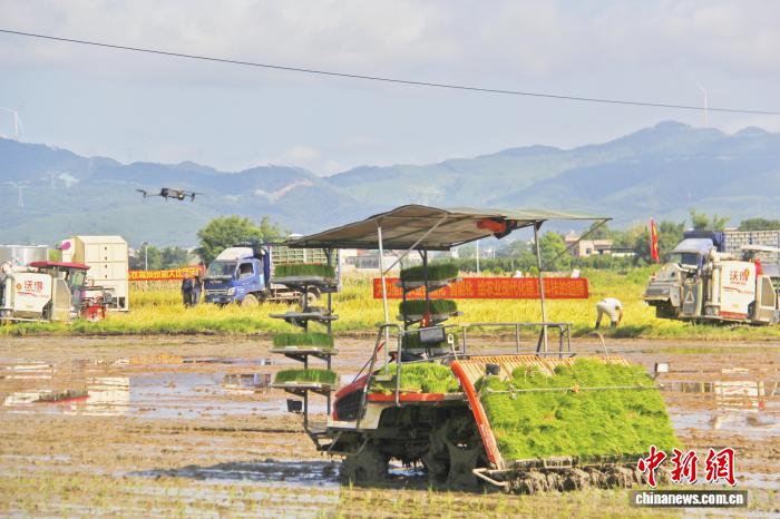 无人插秧机作业演示。(资料图)周琳梅 摄