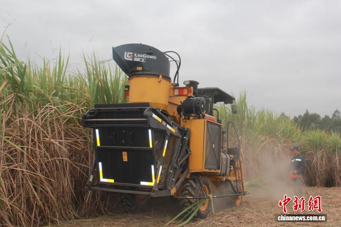 小型切段式甘蔗联合收获机作业演示。(资料图)周琳梅 摄