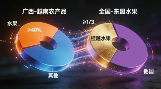 友谊关作为中国最大陆路水果进口口岸之一,2025年前9个月农产品进口额同比增长20.7%。越南榴莲、火龙果、青芒等热带水果“当日采摘、次日达桂”。中国—东盟(崇左)水果交易中心累计完成跨境订单超60万笔,交易额突破180亿元。