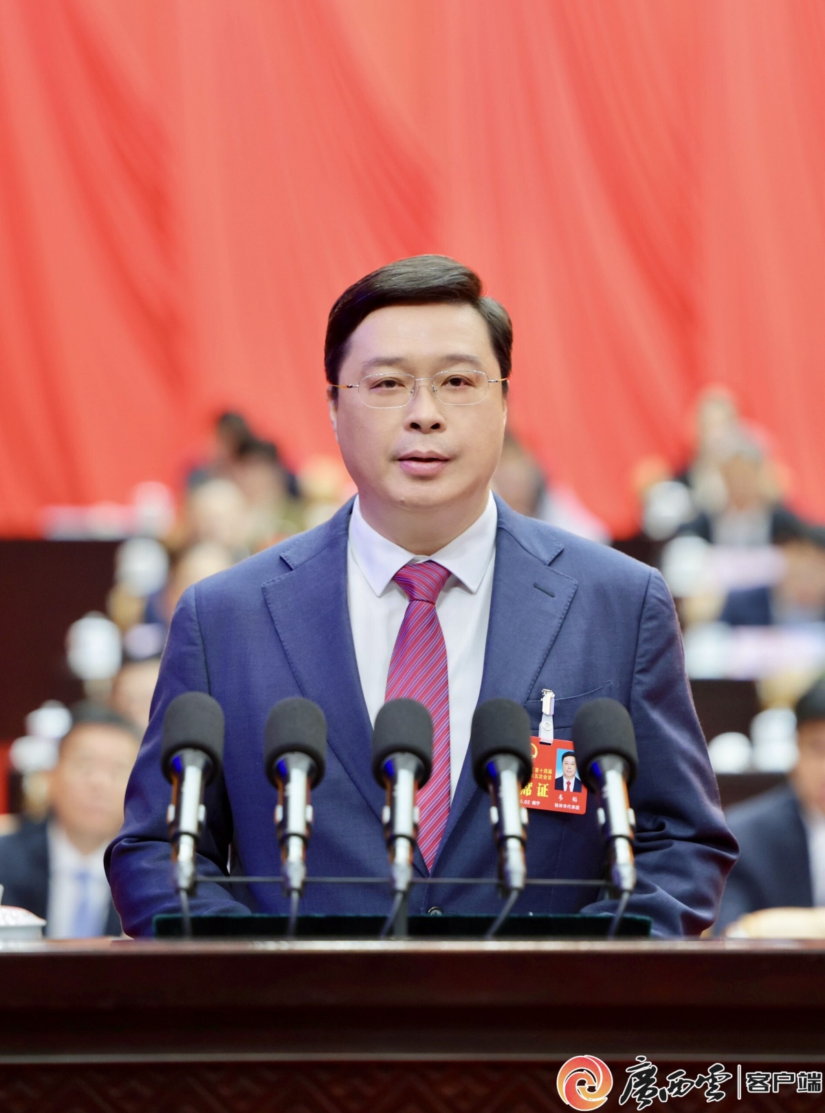 自治区主席韦韬代表自治区第十四届人民政府向大会作政府工作报告。广西云-广西日报记者 邓华 摄