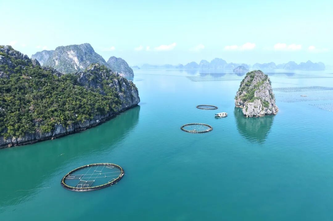 水下机器人潜游巡检,无人机空中俯瞰,全景摄像机无死角监控。在越南广宁省云屯特区,下龙湾海域首个智慧深水网箱迎来首个丰收季。这个由广西中苗农业科技有限公司技术支持的项目成为广西农业“模型出海”的生动实践。