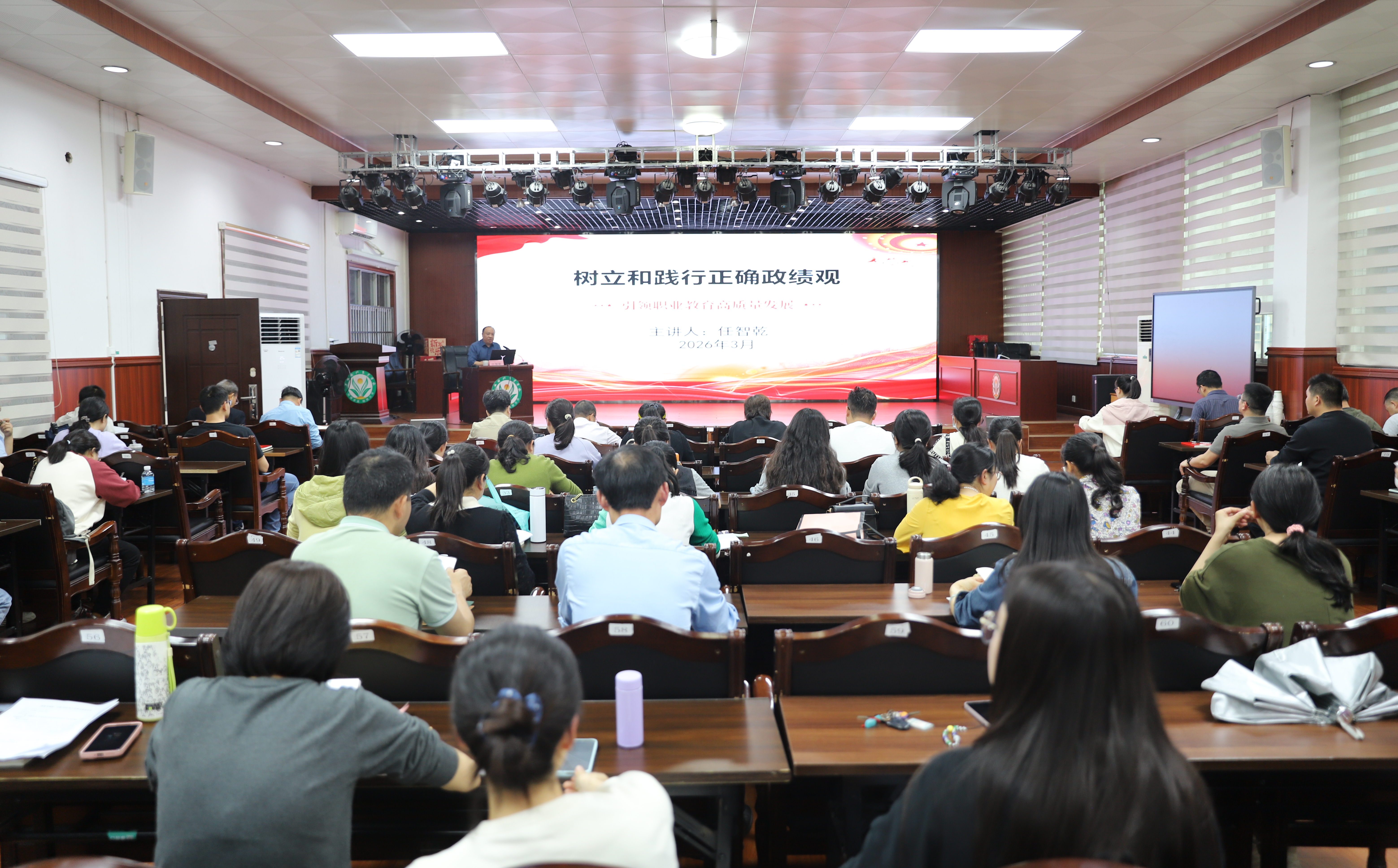 党课紧扣主题、层层递进,围绕“树立和践行正确政绩观”展开全面且深入的讲解。他首先系统梳理了树立和践行正确政绩观的提出背景、指导思想和总体要求,帮助全体党员教师从宏观层面把握政策要义。接着,他聚焦“政绩为谁而树、树什么样的政绩、靠什么树政绩”这三个根本性问题,结合职业教育发展规律与学校办学实际,对正确政绩观的核心内涵进行深入浅出的解读,让全体党员教师明晰方向、把握精髓。随后,他结合典型案例对照检视当前可能存在的政绩偏差,引导大家举一反三、自省自警,筑牢思想防线。最后,他立足学校发展实际,深入探究党员干部树立和践行正确政绩观的具体实践路径,为后续工作开展指明方向。整场党课主题鲜明、内涵深刻、贴合实际,既是一次深刻的思想洗礼,也是一次具体的工作部署。