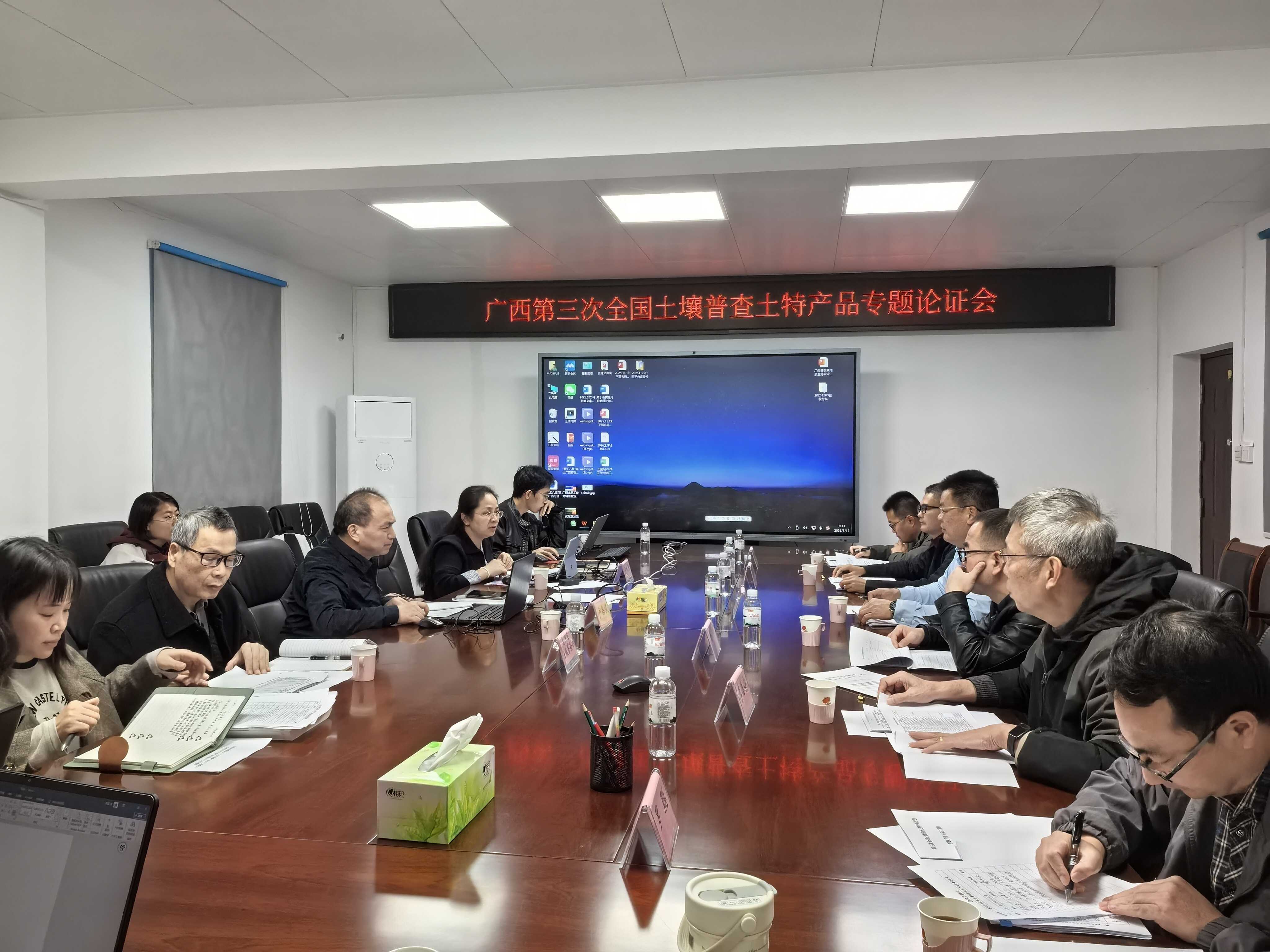 为加快形成广西第三次全国土壤普查土特产品土壤适宜性评价专题成果,做好“土”和“特”文章,2026年1月15日至16日,自治区土壤普查办组织召开专题论证会,邀请全国土特产专题成果形成技术指导组组长、自治区土壤普查办土特产首席专家到会指导,汇聚全区20多位相关领域专家,共同研讨跨市分布、列入自治区级品种清单的土特产品指标体系构建与权重确定等内容。