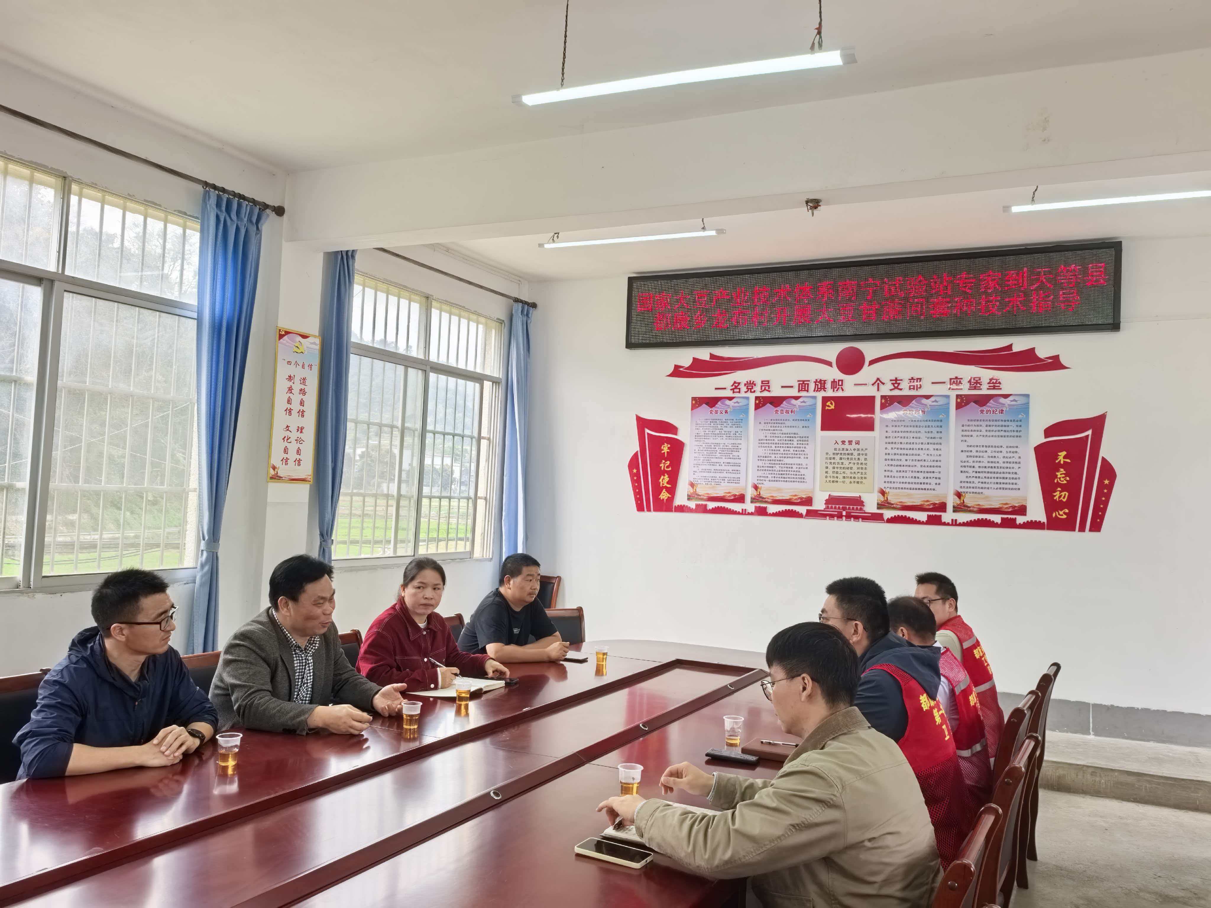 近日,广西大豆油料创新团队成员赴天等县都康乡龙布村开展大豆与甘蔗、玉米间套种技术指导,并赠送小型播种机、大豆和玉米种子等生产物资一批。国家大豆产业技术体系南宁综合试验站、天等县农业农村局及龙布村驻村第一书记和工作队员等参加活动。