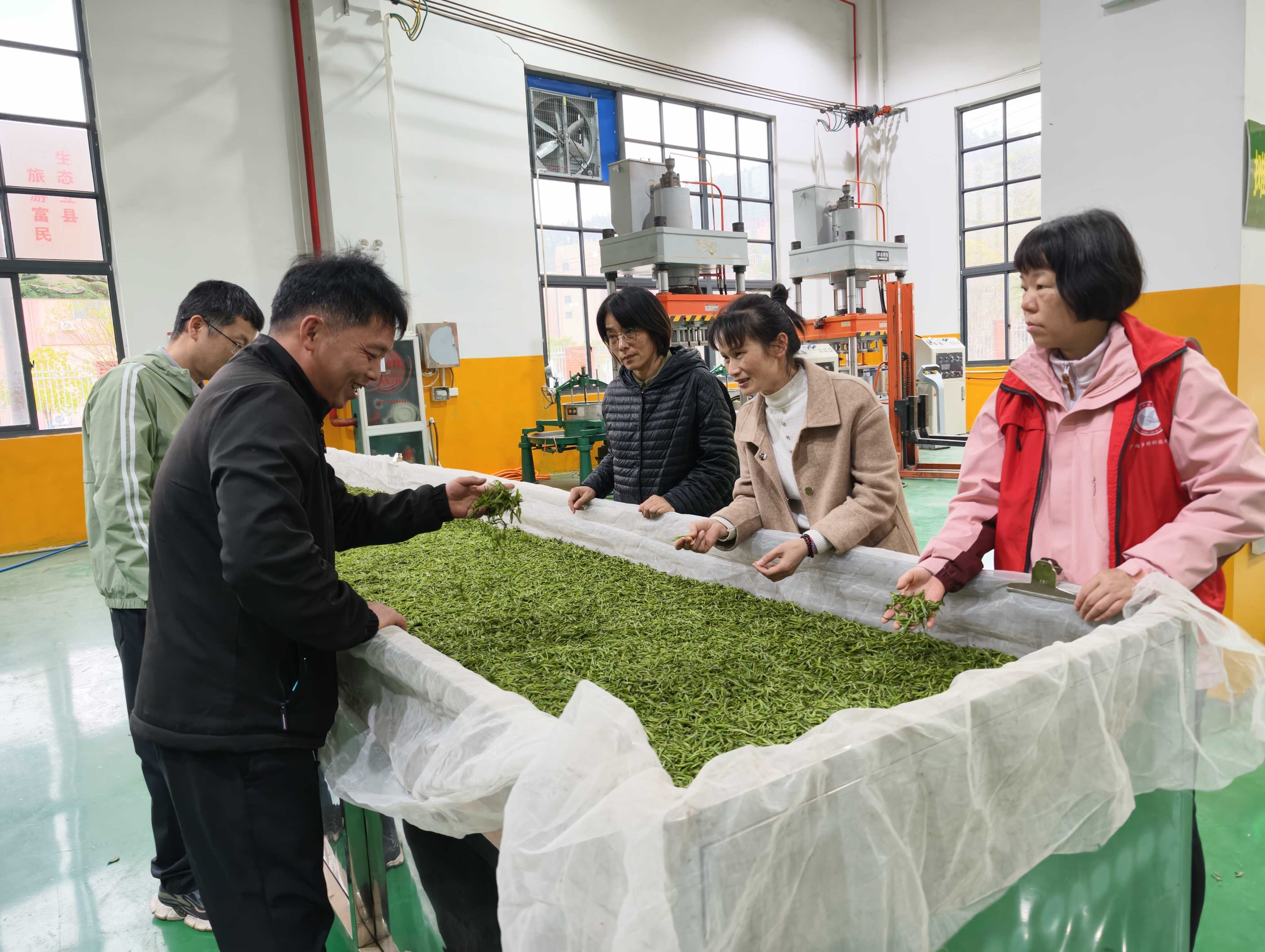 团队成员与三江县茶产业管理中心、茶叶协会代表开展座谈交流,建议围绕三江早春茶特色,持续完善从茶园到茶杯的全链条标准体系,引导茶农、茶企严格执行绿色、有机栽培管理和标准化加工规程,加大绿色防控技术应用,利用电商平台,拓展多元营销渠道。