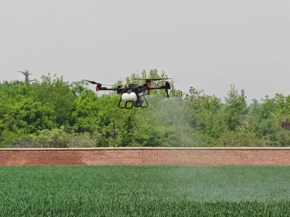 植保无人机小麦“一喷三防”作业。图源:新华网