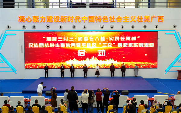 “打起铜鼓唱起歌,民族团结一家亲!”在“潮聚三月三·和谐在平桂”活动现场,各族群众载歌载舞,欢声笑语此起彼伏。专项行动中,梦翔文化传播等企业开展免费下乡辅导306次,让民族团结进步文艺宣传队从9支发展到125支;200余场主题文化活动,用山歌、舞蹈、音乐会等群众喜闻乐见的形式,传递团结理念。