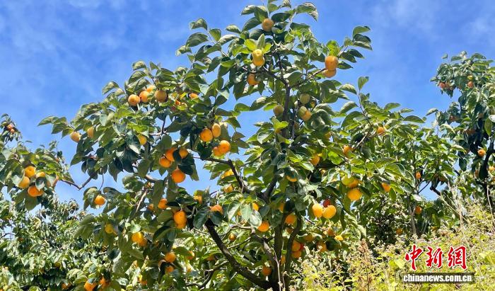 图为广西桂林市恭城瑶族自治县黄竹岗村种植的柿子挂满枝头。何茜 摄