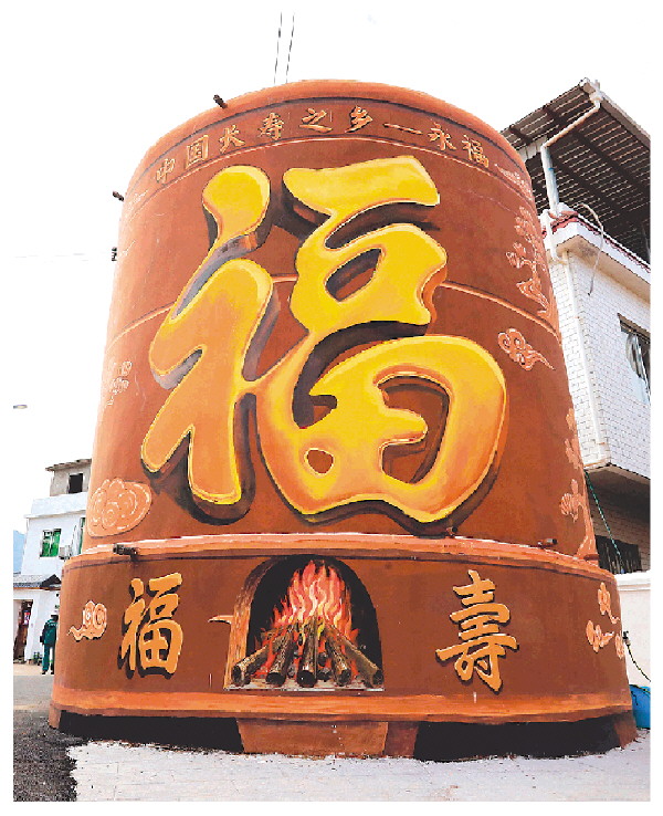 ▲精心装扮的“福字水塔”。记者李忠波 摄