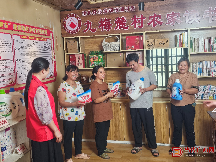 近日,笔者走进钦州市浦北县北通镇清湖村委九梅麓村的“道德超市”,看见货架上整齐摆放着花生油、洗衣液、洗洁精等生活用品,村民们用积分兑换生活用品。
