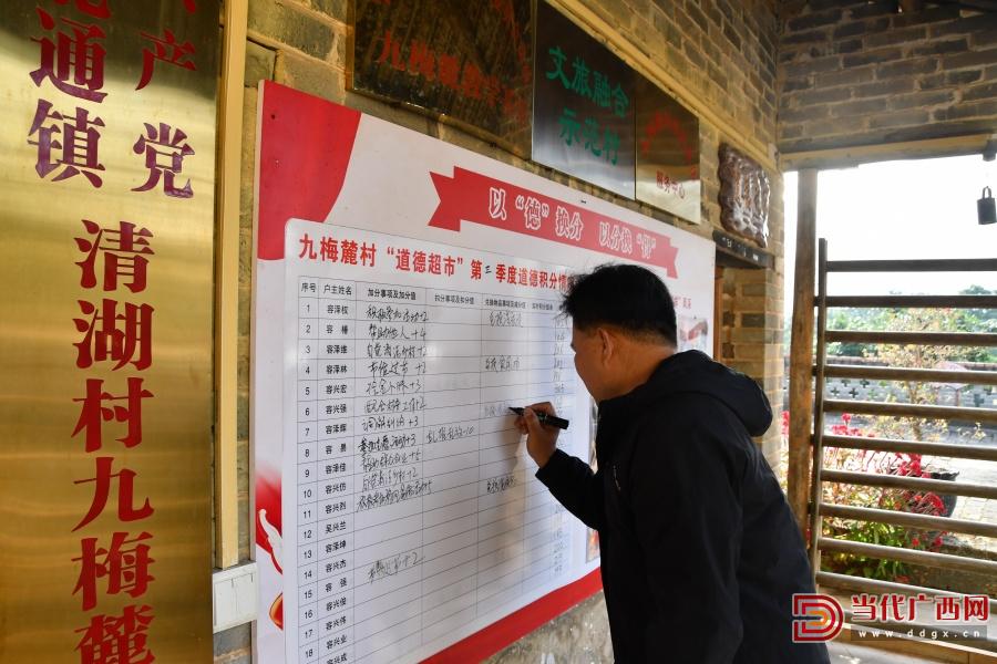 “‘道德超市’刚开业时,村里的党员、干部带头参与村中事务,并领取积分兑换生活用品,乡亲们也跟着积极参与,村里的风气大变样。”九梅麓村党支部书记劳春艳介绍,如今全村58户村民都参与了积分兑换生活用品,累计兑换积分2万多分。