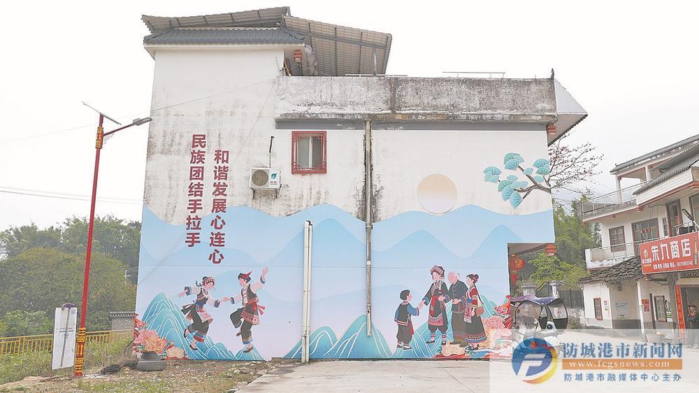 ▲墙体彩绘藏着浓浓的民族风情。