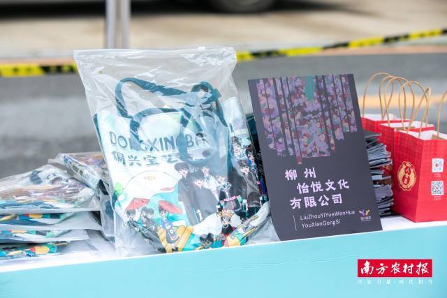 “在网上有刷到过三江茶,今天可算是尝上一回了。”“现场的农民画很有田园范,仿佛置身于广西侗乡。”……推介活动一大亮点要属侗乡物产展销,活动现场,来自粤桂两地的10家企业带上超百款三江农特产品及精美周边参展,既有高山鱼稻、茶油等农副产品,满足市民日常所需,更有让年轻人欣赏的农民画作品以及非遗农民画文创产品。“展销现场的产品真是又实在又有新意,这款印有侗族图案的背包用在平时通勤或者逛街都很合适。”