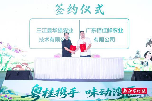 展销的价值,不止于让产品被看见,更在于通过亲身体验建立起信任,从而实现“产品体验”到“实质合作”的转化。“老板的微信留一个,我们下次还找你买。”来自三江县新胜实业投资有限公司的负责人对本次展销效果很满意,一个下午的时间手机微信加了二十来号人。三江县应溪茶业有限公司负责人同样表示此次展销出乎意料,“没想到产品走出来这么受欢迎。”在推介活动现场,三江县华强农业技术有限公司与广东栢佳鲜农业有限公司、三江县精湛农业科技有限公司与广州绿秧田食品有限公司、三江县供联投资有限公司与鲜果御城连锁分别进行签约,共同助推三江优质农产品走进湾区市场。