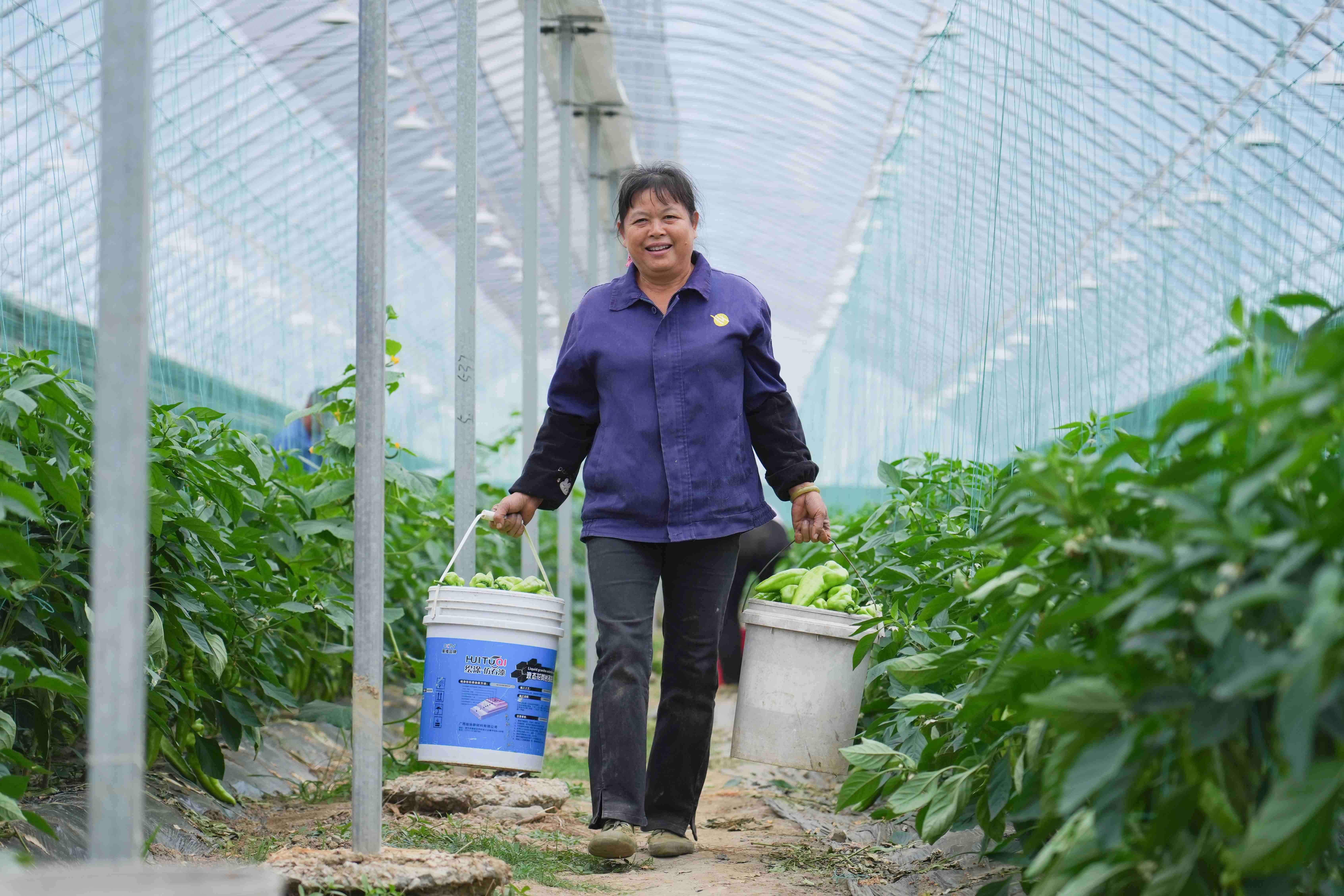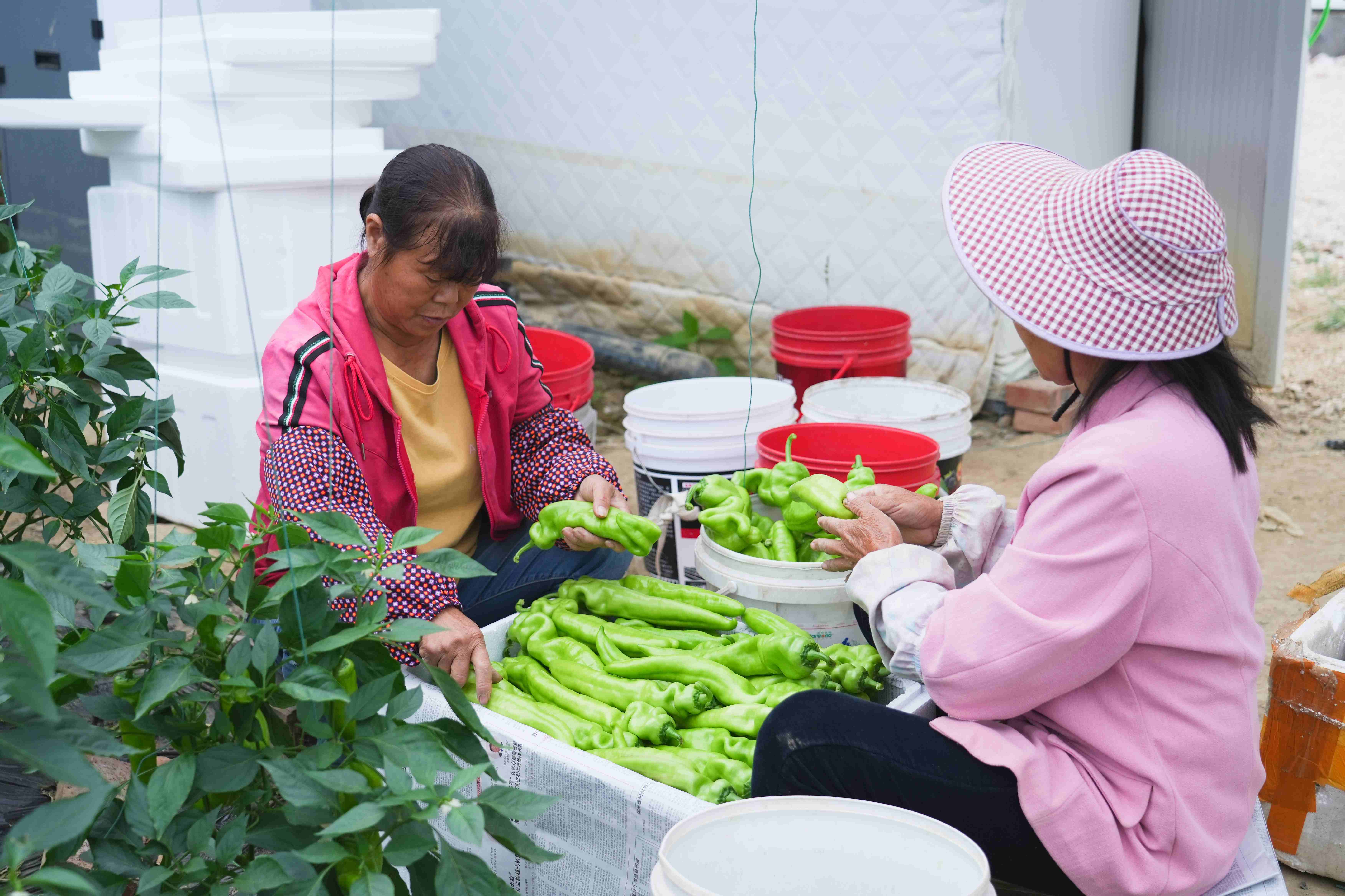蔬菜产业属劳动密集型产业,从育苗、种植到采摘、分拣,每个环节都离不开人工。泉头村蔬菜大棚项目成功落地并高效运营,得益于村民们的广泛支持与参与。通过将土地集中流转给基地,近百户村民不仅获得了稳定的租金收益,更打开了在家门口就业的便利渠道。“现在不用出远门,在家门口就能上班,既能照顾家里,一个月还能挣几千块,比外出打工强多了!”一位正熟练分拣黄皮尖椒的村民开心地说道。土地流转得租金、入园务工挣薪金,这种“租金+薪金”的双重增收模式,让村民们的钱袋子实实在在地鼓了起来,更通过“田间课堂”式的实操培训,让一批村民逐步成长为掌握现代种植技术的新农人。