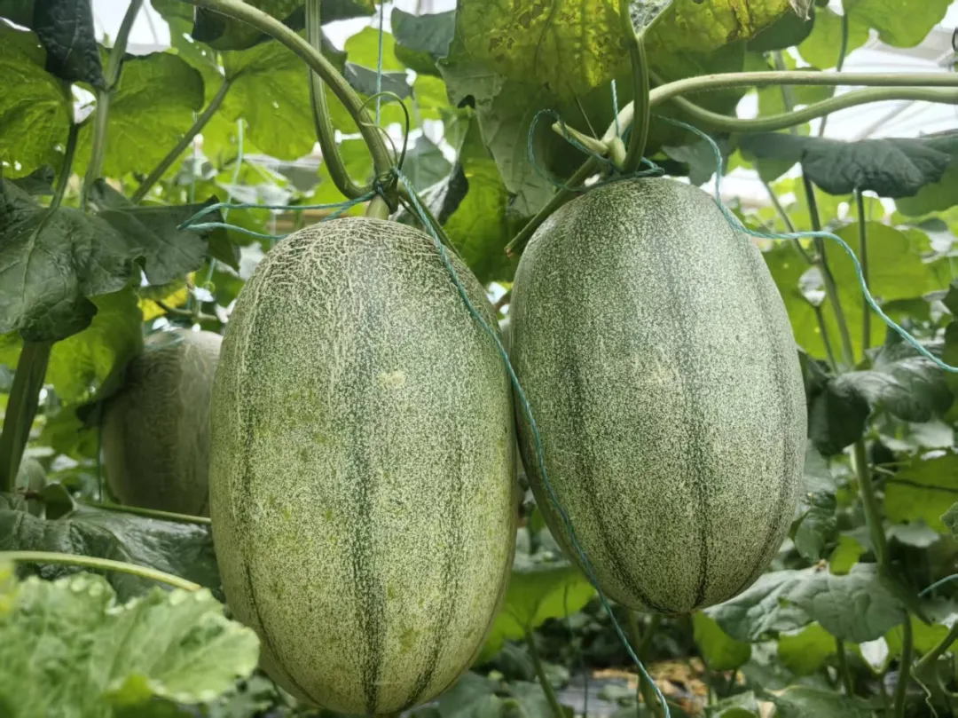 在融安县长安镇大巷村现代农业蔬菜大棚拍摄的哈密瓜。