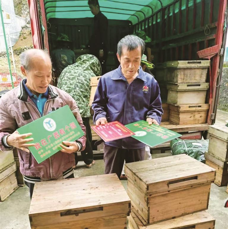 近日,大化瑶族自治县七百弄乡古竹村依托粤桂协作帮扶资金向75户群众发放150箱蜂箱(如图),进一步扩大蜜蜂养殖规模,以党建引领推动富民产业提质增效。
