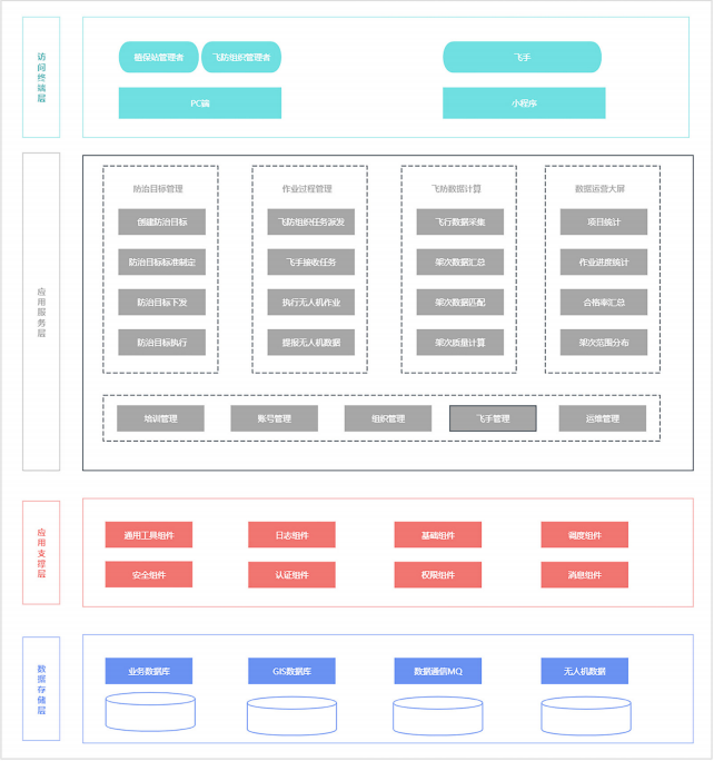 平台聚焦植保无人机监管的数据壁垒与效率瓶颈,通过技术集成与模式创新构建解决方案。在组织管理层面,依托自治区植保站的管理职能,建立政企协作机制,推动无人机厂商、飞防组织与监管部门的数据共享与业务协同;在技术应用层面,采用毕昇JDK、PolarDB数据存储系统等搭建技术架构,实现多源异构数据的高效采集、存储与分析;在模式创新层面,开创“平台化第三方监管”模式,通过统一作业标准、自动化质量评估与全过程追溯,形成“机器判别+专家验证”的监管体系,降低人工监管成本。