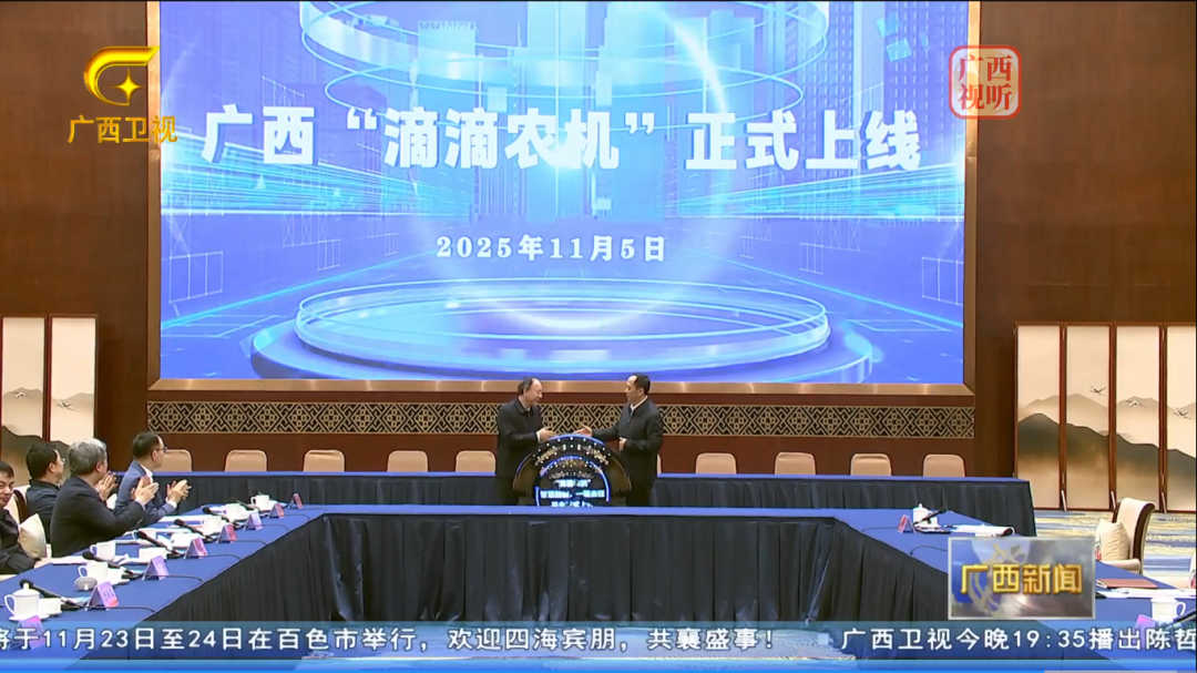 11月5日,2025年“智汇八桂·特色农业高质量发展院士专家广西行”活动——“人工智能+”赋能现代农业创新合作恳谈会在南宁举行,会上,中国工程院院士赵春江和广西壮族自治区人民政府副主席许显辉共同启动广西“滴滴农机”正式上线按钮,标志着广西“智慧农机”迈上新的台阶,广西农机服务迈入数字化时代。