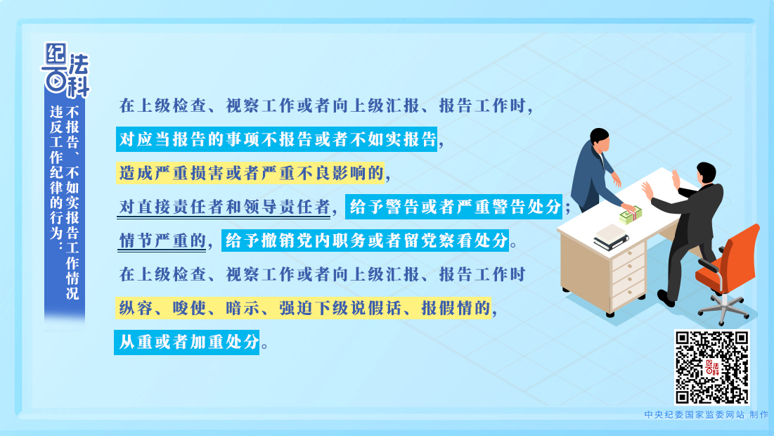 《中国共产党纪律处分条例》第一百四十条规定,在上级检查、视察工作或者向上级汇报、报告工作时,对应当报告的事项不报告或者不如实报告,造成严重损害或者严重不良影响的,对直接责任者和领导责任者,给予警告或者严重警告处分;情节严重的,给予撤销党内职务或者留党察看处分。在上级检查、视察工作或者向上级汇报、报告工作时纵容、唆使、暗示、强迫下级说假话、报假情的,从重或者加重处分。